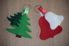 Van vilt maken we een kerst sleutelhanger. Bijvoorbeeld een kerstboom, een kerstklok of een ster.