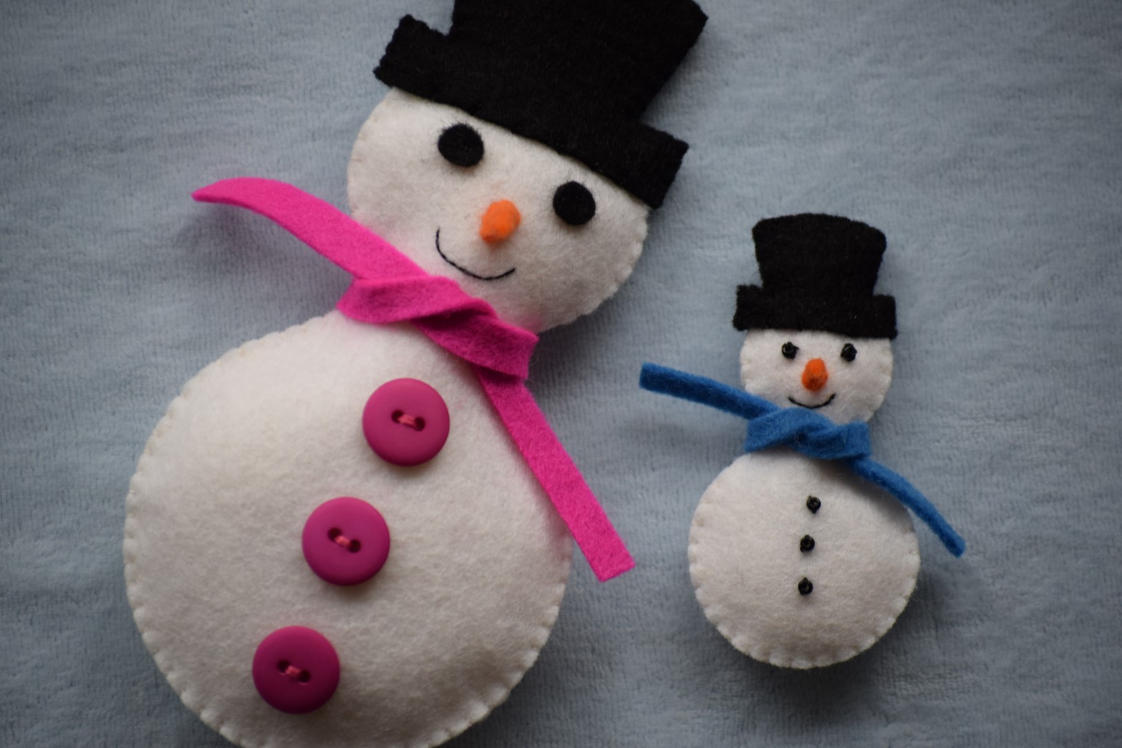 We gaan een sneeuwpop maken van vilt. Leuk om aan een tak voor het raam te hangen!